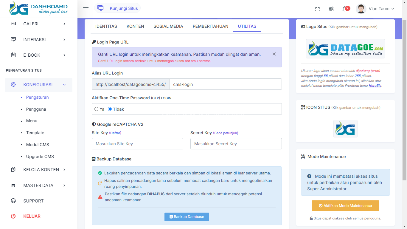 Tampilan Konfigurasi Versi awal CMS DATAGOE